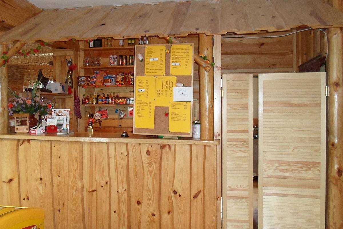 Przebywający u nas plażowicze i kajakarze mogą posilić się w naszym barze pysznymi domowymi obiadami jak i daniamu fast-food, znajdują się u nas także słodycze inapoje gorące oraz szczególnie polecane w upalne dni lody i napoje chłodzące w tym również alkoholowe.